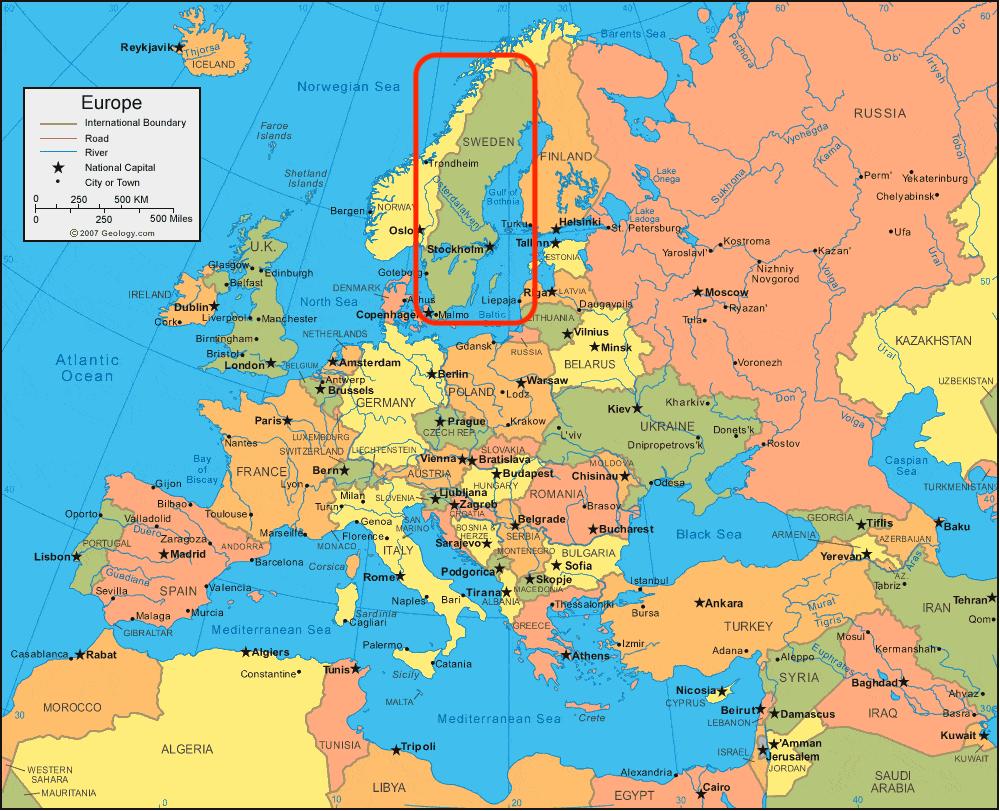 Mapa Europy Szwecja. Szwecja mapa Europy (Europa Północna Europa) do druku. Szwecja mapa Europy (Europa Północna Europa) do pobrania. Szwecja (Listeni/ˈswiːdən/ swee-dən; szwedzki: Sverige [ˈsværjɛ]), oficjalnie Królestwo Szwecji (szwedzki: O tym brzmieniu Konungariket Sverige), jest krajem nordyckim na Półwyspie Skandynawskim w Europie Północnej. Przy 449,964 km2 (173,732 sq mi), Szwecja jest czwartym co do wielkości krajem w Europie, a największym w Europie Północnej, jak widać na mapie Europy Szwecja. Gotlandia i Olandia są największymi wyspami Szwecji; Vänern i Vättern są jej największymi jeziorami. Vänern jest trzecim co do wielkości w Europie, po jeziorze Ładoga i jeziorze Onega w Rosji